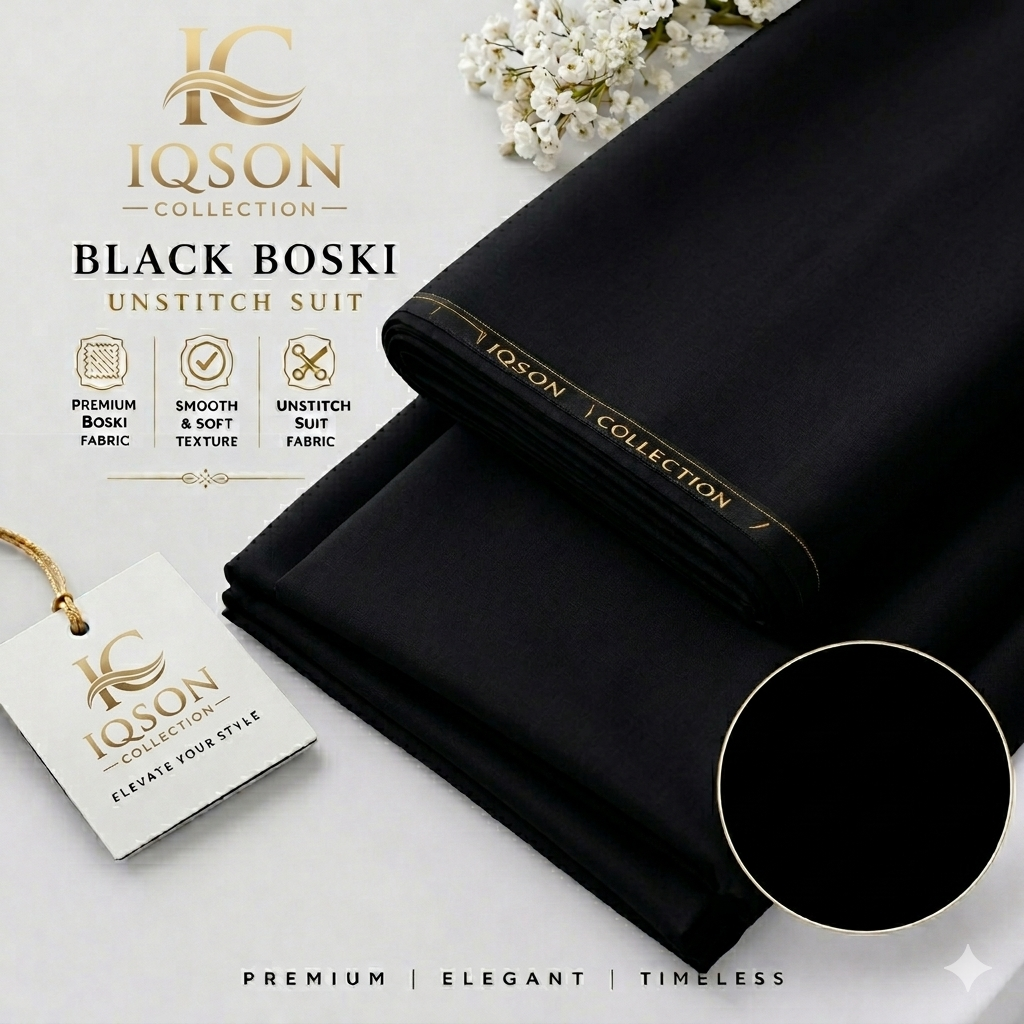 Experience the luxury of Iqson Collection’s Premium JET BLACK Boski. Crafted from authentic spun silk, this unstitched suit offers a signature liquid-like drape and a soft, breathable texture. Perfect for all seasons, its timeless elegance and subtle sheen ensure a sophisticated look for weddings and formal occasions. Elevate your style today.